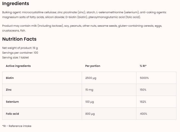 Vedecké výskumy ukazujú, že biotín je nevyhnutný pre syntézu keratínu, proteínu, ktorý tvorí vlasy. Niektoré štúdie naznačujú, že biotínové doplnky môžu zvýšiť hustotu a silu vlasov a môžu tiež pomôcť pri vypadávaní vlasov. Existujú tiež dôkazy, že biotín môže zlepšiť zdravie nechtov, znížiť lámavosť a podporiť rýchlejší rast nechtov.