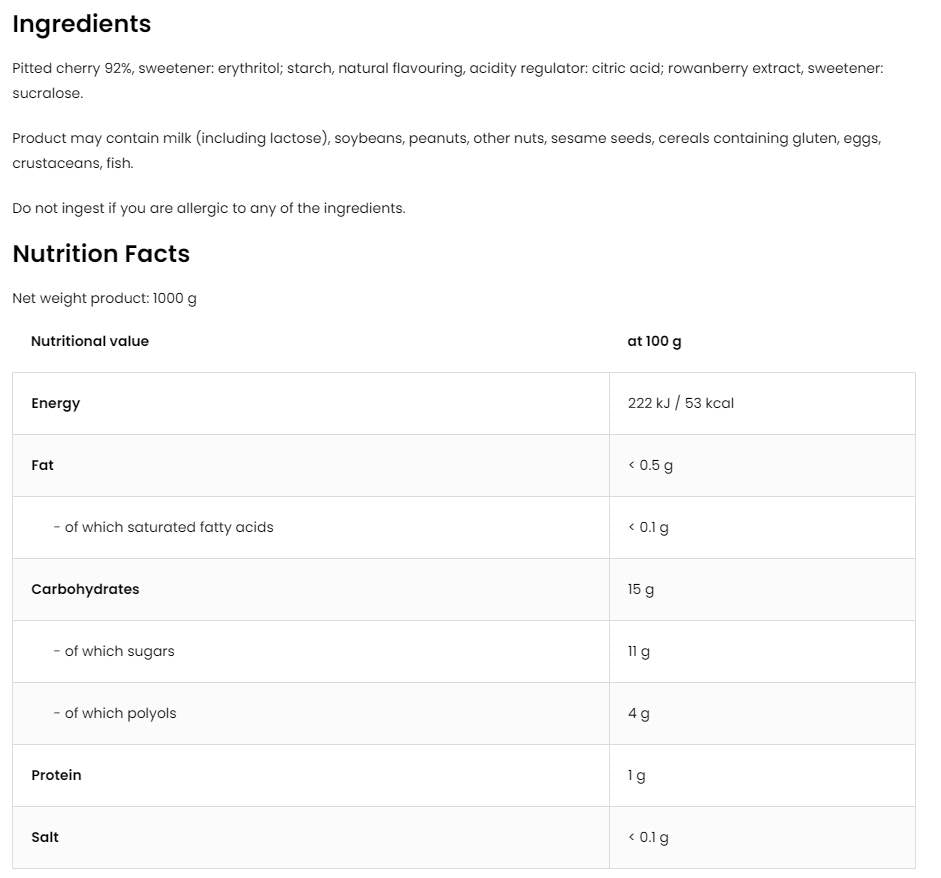 • Prirodzená chuť a vôňa čerstvých čerešní