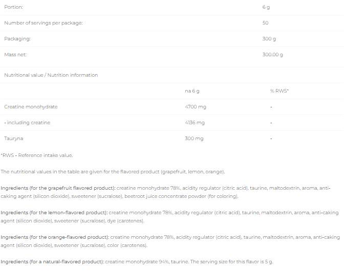 • S pridaným taurínom: Táto zložka zlepšuje vstrebávanie kreatínu, čo vám umožňuje získať z produktu maximum.