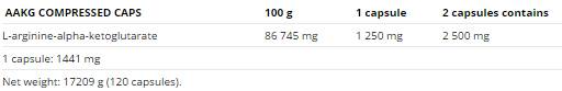 AAKG komprimované čiapky - 120 kapsúl