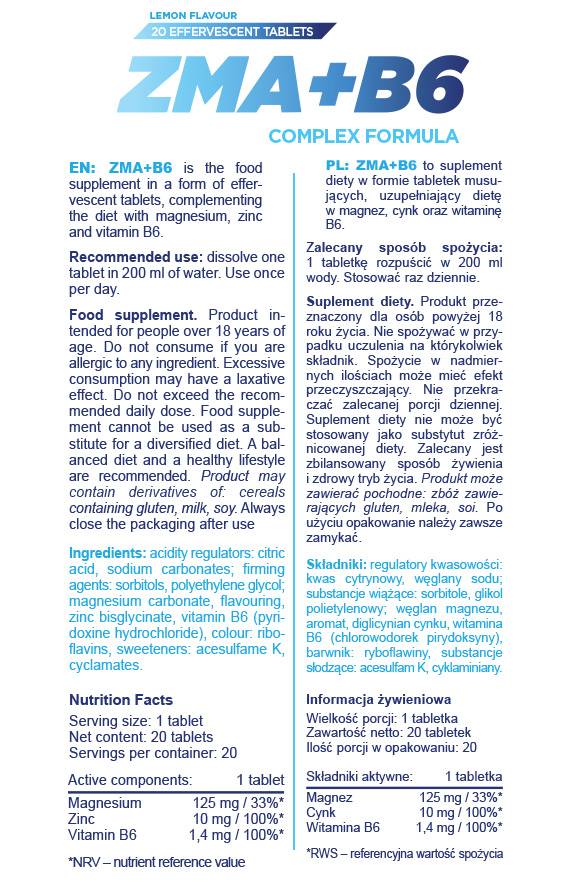 ZMA + B6 | Zloženie šumivého komplexu - 20 rozpustných tabliet