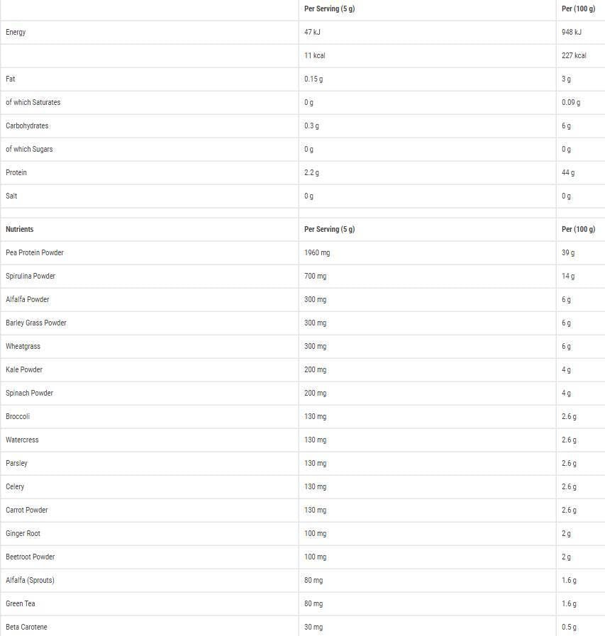 Ak chcete získať najlepšiu hodnotu za nákupy Critical Greens, navštívte stránku Feel You. Ponúkame konkurencieschopné ceny, rýchle dodanie a výnimočný zákaznícky servis. Úplný zoznam zložiek nájdete na druhej fotografii produktu. Urobte si prieskum a uistite sa, že robíte to najlepšie pre svoje zdravie!
