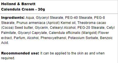 Holland & Barrett Calendula Cream je jemný, nemastný krém s receptúrou bez parabénov a je vhodný pre vegánov. Môže sa aplikovať na pokožku podľa potreby. Nechtíkový krém upokojuje, hydratuje a chráni akúkoľvek pokožku, ktorá potrebuje TLC a obsahuje terapeutické esenciálne oleje. 100% prírodný, upokojujúci zmäkčujúci prípravok pre dospelých a deti od 3 rokov, určený pre citlivú pokožku.