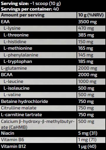 Toto je produkt novej generácie, ktorý zlepší vašu regeneráciu po náročnom fyzickom tréningu tým, že vám ponúkne vysokú biologickú dostupnosť BCAA aminokyseliny.