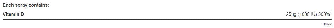 Holland & Barrett Vitamín D3 sprej je prosbasant ústny sprej s príchuťou mäty. Vitamín D3 sa produkuje v našom tele pod kožou v reakcii na vystavenie slnečnému žiareniu. Medzi ďalšie prírodné zdroje vitamínu D patrí losos, makrela, sardinky, mlieko, vajcia a pečeň. Denný doplnok vitamínu D môže byť prospešný, ak nejete mäso alebo mastné ryby, zakrývate si celú pokožku, keď ste vonku, ste uzavretí vo svojom dome alebo len zriedka chodíte von, alebo máte ázijský pôvod. Vitamín D prispieva k niekoľkým dôležitým funkciám v tele. Vitamín D reguluje množstvo vápnika a fosfátu potrebného na udržanie zdravých kostí a zubov. Vhodné pre vegetariánov.