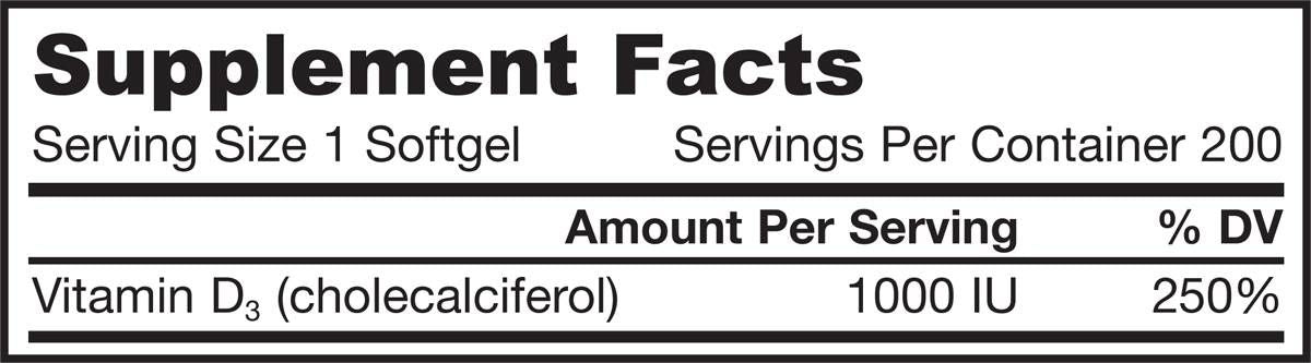 100 IU vitamínu D sa rovná 2,5 mikrogramom cholekalciferolu. Každý mäkký gél obsahuje 25 mcg cholekalciferolu.