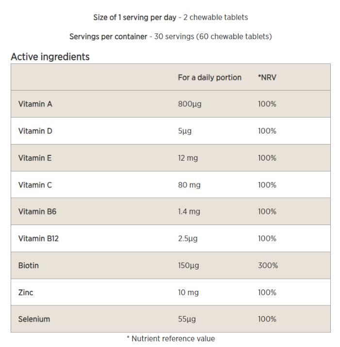 Trasa: Užívajte 2 žuvacie tablety denne.
