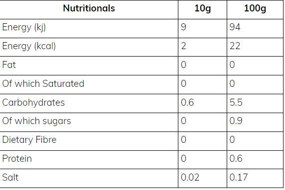 *RI = referenčný príjem. Referenčný príjem pre priemerného dospelého (8400 kJ/2000 kcal). Užívajte podľa individuálnych potrieb, konzumujte ihneď po príprave. Oddelenie fáz je prirodzený proces. Pred použitím dobre pretrepte.