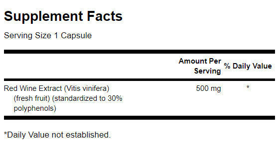 Všetci odborníci na zdravú výživu už mnoho rokov zdôrazňujú výhody konzumácie červeného vína, najmä jeho schopnosť udržiavať kardiovaskulárne zdravie. No vstrebávanie týchto benefitov súvisí aj s príjmom alkoholu, ktorý sa mnohým ľuďom neodporúča. Existuje skvelý spôsob, ako využiť všetky antioxidačné polyfenoly, ktoré červené víno obsahuje, bez toho, aby ste museli piť alkohol. Toto sú naše kapsuly, ktoré poskytujú alternatívu, oveľa zdravšiu a prospešnejšiu. Využite silu červeného vína v boji proti voľným radikálom a ochráňte tak celé svoje telo, najmä srdce. Náš extrakt je štandardizovaný tak, aby obsahoval neuveriteľných 30% obsahu polyfenolov, čo zaručuje silnú antioxidačnú aktivitu v každej kapsule