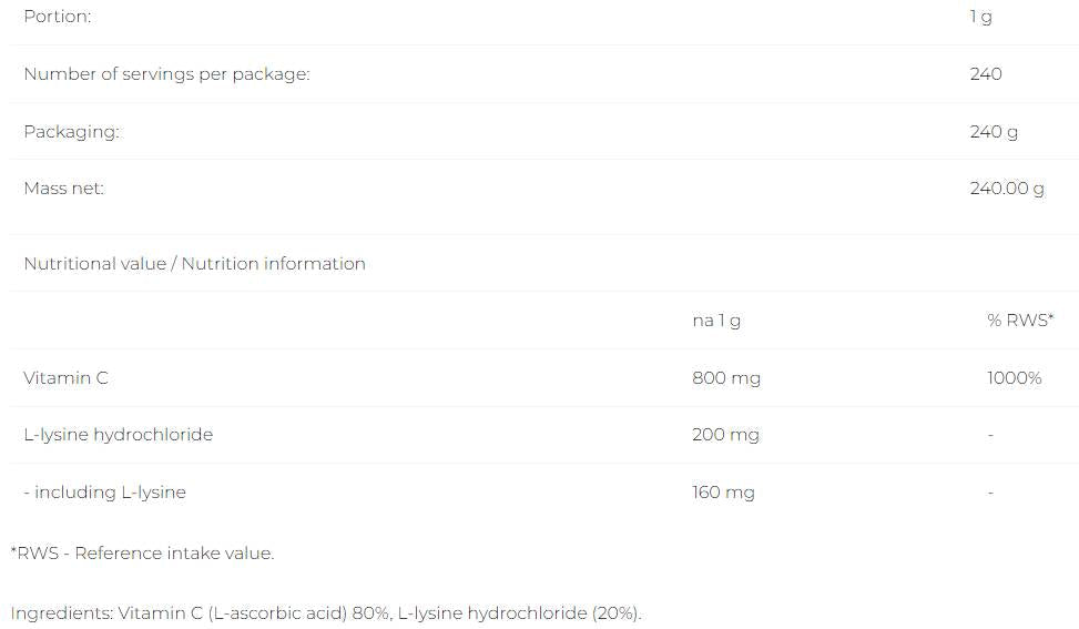 Vitamín C + L-lyzínový prášok - 240 gramov