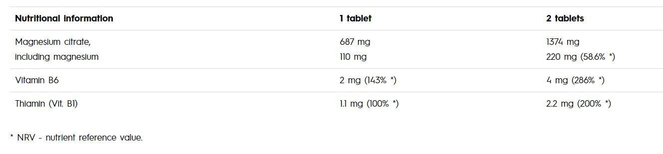 Ingrediencie: Horčík, vitamín B1, vitamín B6