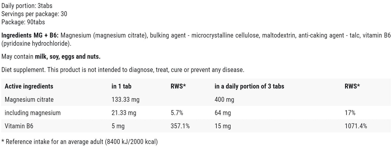 Mg + B6 400 mg | Citrát horčíka + B6 - 90 tablety