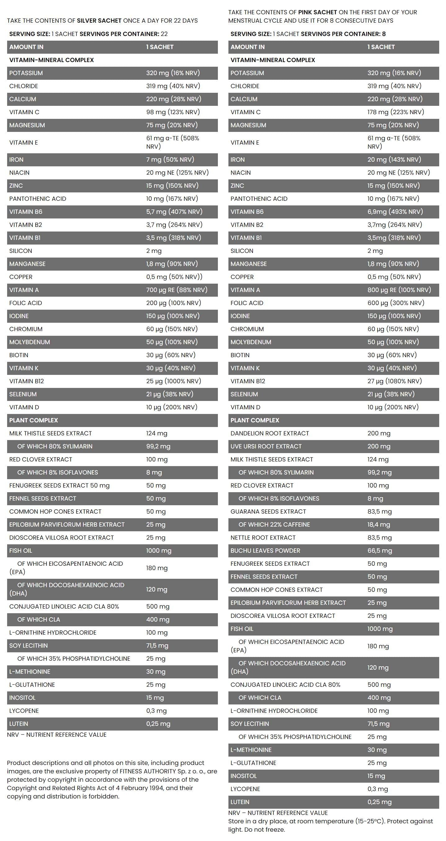 Dámska fitness pak Kompletný multivitamínový vzorec pre dni menštruačného cyklu - 22 + 8 paketov