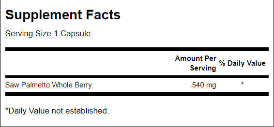Swanson Saw Palmetto je popredná bylinka pre zdravie mužov. Obsahuje prírodné mastné kyseliny a steroly, ktoré poskytujú cennú nutričnú podporu pre prostatu. Naše kapsuly obsahujú 540 mg vysokokvalitného prášku z celých semien v plnospektrálnom formáte, takže získate všetky zložky Saw Palmetto tak, ako sa nachádzajú v prírode.