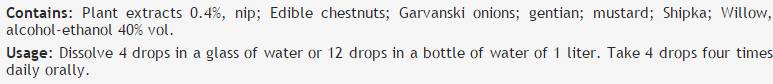 Rastlinné extrakty 0,4%: praslička roľná; Gaštan; Ravenova cibuľa; horec; horčica; šípka; Willow
