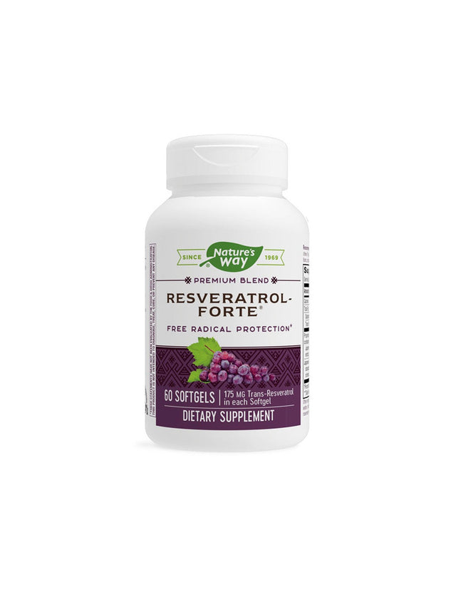 Resveratrol Forte od americkej spoločnosti Nature's Way je vysoko účinný prípravok, ktorý chráni bunky pred oxidačným stresom a prispieva k normálnej činnosti srdca, pečene a ciev. Každá kapsula z mäkkého gélu je ekvivalentná resveratrolu obsiahnutému v 118 fľašiach červeného vína.