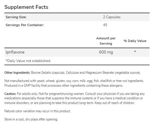 Dôležité: Pred začatím užívania Ipriflavonu sa poraďte s lekárom, najmä ak máte zdravotné problémy alebo užívate lieky. Neodporúča sa tehotným a dojčiacim ženám.