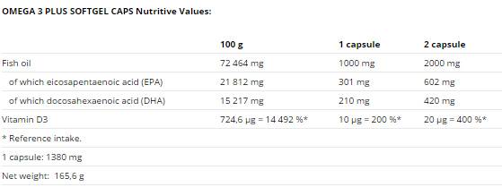 Omega-3 esenciálne mastné kyseliny zlepšujú činnosť mozgu, podporujú činnosť srdca a zlepšujú videnie. Tento produkt je tiež obohatený o vitamín D, ktorý prispieva k normálnej funkcii imunitného systému.
