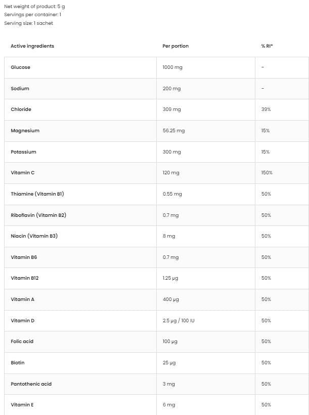 Návod na použitie: rozpustite 1 dávku OstroVit Izotonický | Electrolyte Blend vrecúška po 250-500 ml a užite počas tréningu.