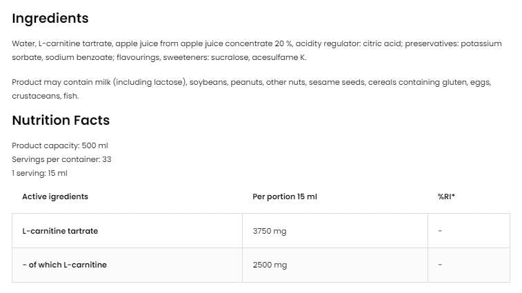 L-Carnitine 125 000 Tartrate Liquid 500 ml