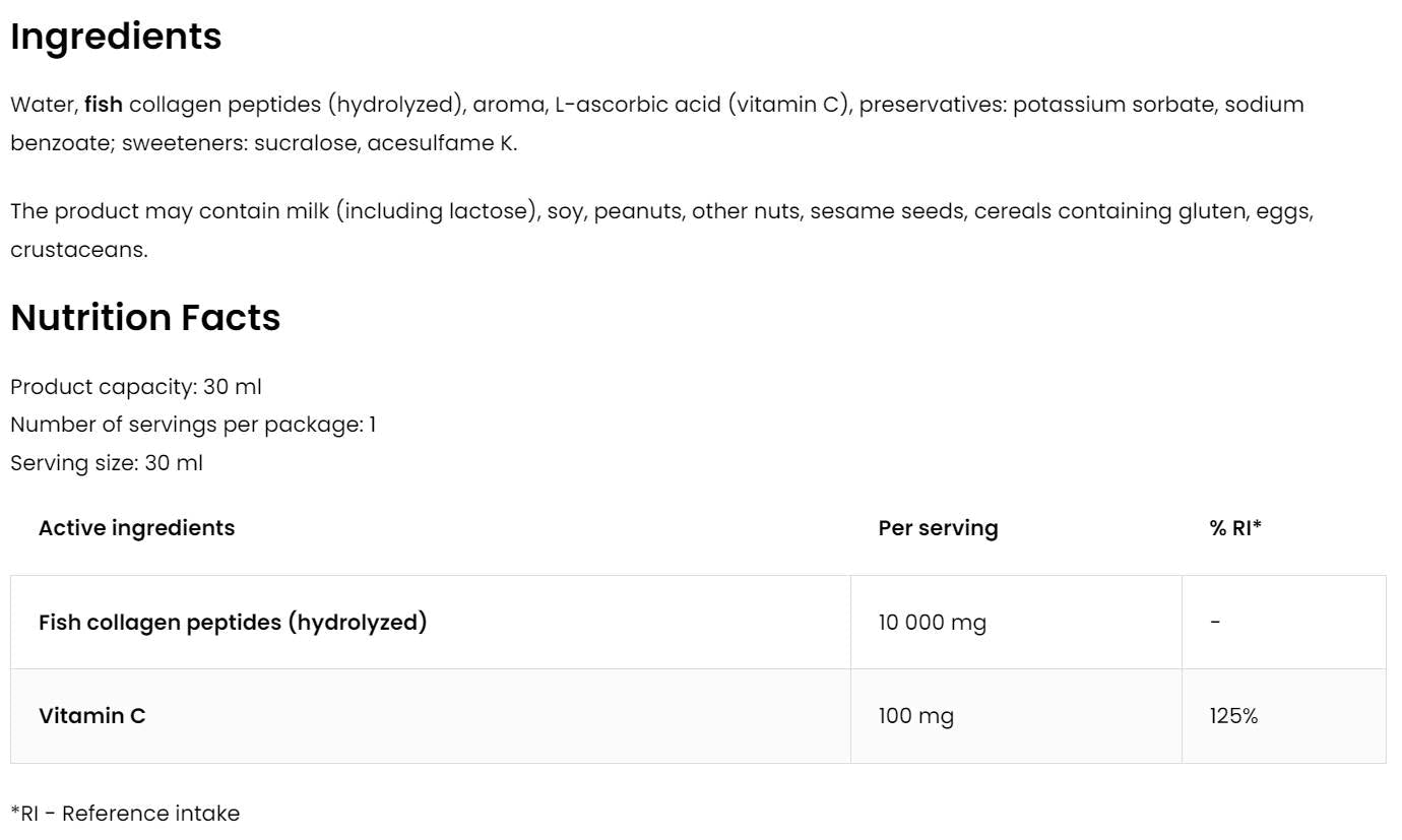 Morská kolagénová tekutina 10 000 mg 30 ml