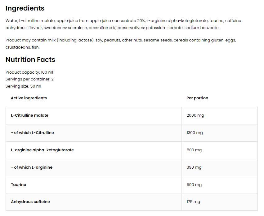Pump pred tréningom výstrel Bez beta -alanínu - 100 ml