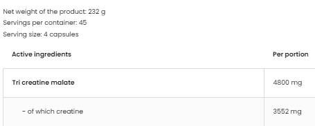 OstroVit Tri kreatín malát / TCM 1250 mg je vysoko kvalitný doplnok stravy, ktorý je zdrojom kreatín malátu. Ide o kombináciu kreatín a kyselina jablčná v pomere 1:3.
