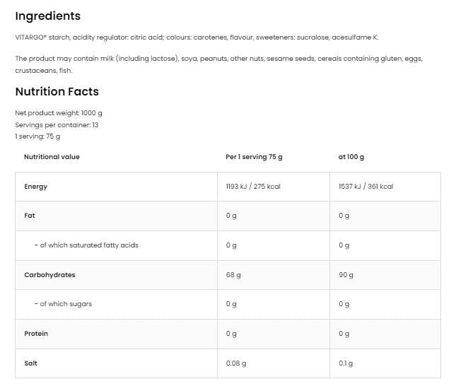 OstroVit VITARGO | Fastest Body Fuel е серия от въглехидратни добавки, специално предназначени за всички физиачне физиовиче чиято основна съставка е нишестето VITARGO. Продуктът се характеризира с високо съдържание на въглехидрати (90%), които са остновния енергия в нашата диета. Ако спортувате редовно и искате лесен начин да осигурите диетата си с високомолекулни си високомолекулини опитайте нашия OstroVit VITARGO | Najrýchlejšie telesné palivo - хранителни вещества, налични в два обема и три вкуса!