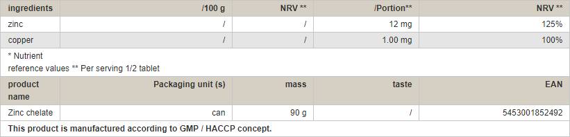 Zinok sa v tele môže ukladať v relatívne malom množstve, preto je potrebné ho neustále dopĺňať. Pri nedostatku sa spomaľuje svalový vývoj, oslabuje sa imunitný systém, čo má za následok zníženú odolnosť voči chorobám. Niektoré z najdôležitejších vlastností zinku sú: je nevyhnutný pre syntézu bielkovín a DNA; reguluje cirkuláciu vitamínu A v bunkách; zlepšuje syntézu inzulínu; udržiava rovnováhu pH krvi; je nevyhnutný pre vývoj pohlavných orgánov a úspešne sa používa v prípadoch neplodnosti; hrá dôležitú úlohu v mozgovej činnosti; urýchľuje hojenie rán; zlepšuje intelektuálne schopnosti. Zinok je tiež nevyhnutný pre syntézu testosterónu, ktorého pôsobenie je spojené s rozvojom masívnejších svalov u mužov a športovcov.