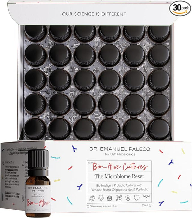 🧫 ŽIVÉ A AKTÍVNE SA MNOŽIACE BAKTÉRIEBio-Alive je synbiotikum s inteligentným tekutým komplexom, obohateným o prebiotiká a postbiotiká , čo nespúšťa tráviaci proces okamžite. To umožňuje baktériám zostať Alive a aktívne sa množia. Väčšina probiotík je lyofilizovaná (lyofilizovaná), aby prežila v žalúdku, ale to ich robí neúčinnými – iba 2 – 3 % zostáva aktívnych. Bio-Alive zabezpečuje, aby sa všetky baktérie množili a poskytovali maximálne zdravotné výhody.