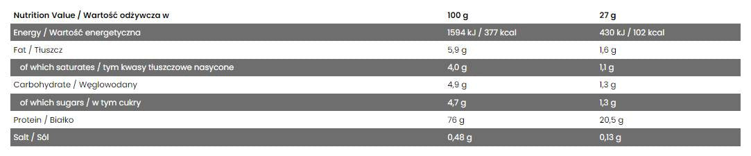 Odporúčané dávkovanie: Rozmiešajte 1 odmerku (27 gramov) vo vode alebo mlieku. Užívajte 3-4 krát denne - po raňajkách, 60-90 minút pred tréningom, bezprostredne po tréningu a 30-60 minút pred spaním.
