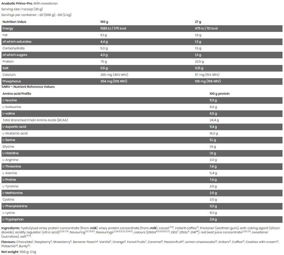 Anabolic Prime Pro je 100 % srvátkový proteín, pozostávajúci prevažne z hydrolyzátu srvátkového proteínu. Anabolic Prime Pro je srvátkový proteín najvyššej kvality, ktorý zabezpečí, že vaše svaly dostanú najlepšiu možnú výživu a regeneráciu. A to ihneď po jeho užití!
