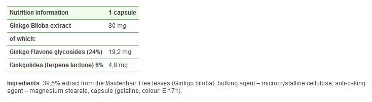 Obsahuje vysoko koncentrovaný extrakt Ginkgo biloba. Aktívne zložky rastliny blokujú pôsobenie voľných radikálov a zabraňujú ukladaniu tukových usadenín na stenách ciev.
