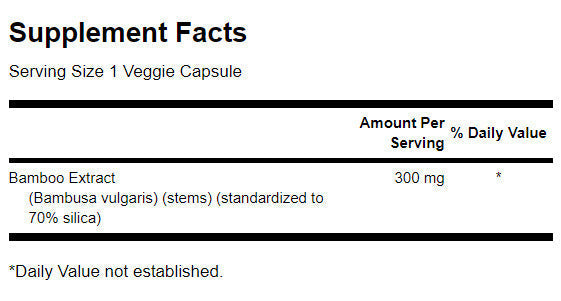 Kvalitná silica z nášho bambusového extraktu je skvelým spôsobom, ako zabezpečiť zdravý príjem tejto cennej živiny, ktorá vyživuje množstvo životne dôležitých tkanív. Asi už viete, že praslička roľná je skvelým zdrojom oxidu kremičitého, ale to nie je nič v porovnaní s bambusom. Kým praslička roľná obsahuje asi 7% oxidu kremičitého, bambus má priemernú koncentráciu 70% oxidu kremičitého! Priemerný človek si v tele udrží približne 20 g oxidu kremičitého, no táto hladina sa s vekom znižuje v dôsledku nižšej schopnosti organizmu ho asimilovať, ako aj iných faktorov. Doplňte svoju každodennú stravu oxidom kremičitým pre zdravé vlasy, pokožku a nechty!