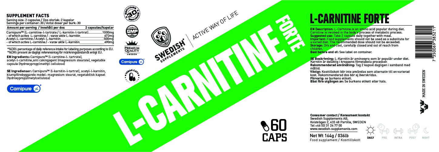 Švédsky L-Carnitine Forte / Carnipure® + Acetyl je jedinečný produkt, ktorý kombinuje 2 najkvalitnejšie a najvstrebateľnejšie formy L-karnitínu.