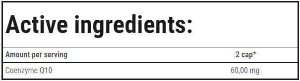 KOENZÝM Q10 obsahuje kvalitný koenzým Q10. Ide o látku, ktorá sa prirodzene vyskytuje v mitochondriách buniek. COENZYME Q10 sa odporúča používať fyzicky aktívnym ľuďom a športovcom, ako aj ľuďom v strednom a staršom veku.