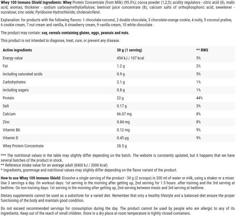 Trec Nutrition Srvátkový 100 je fantastický doplnok, ktorý poskytuje potrebné živiny, keď ich telo najviac potrebuje, a to najmä v profesionálnom športe, počas nízkokalorických diét (počas období chudnutia) a regenerácie. Produkt sa odporúča najmä na získanie čistej svalovej hmoty a pre rýchlejšiu regeneráciu. .