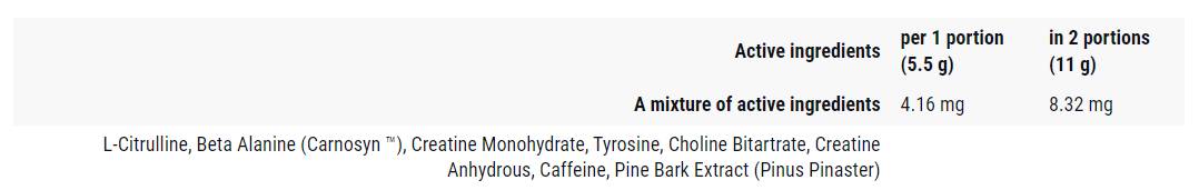 Pokyny : 1,2 až 3 odmerky 30-45 minút pred tréningom. Pre ľudí citlivých na stimulanty - 1 až 1,5 odmerky. Odporúča sa začať s jednou odmerkou na posúdenie vašej individuálnej tolerancie k produktu.