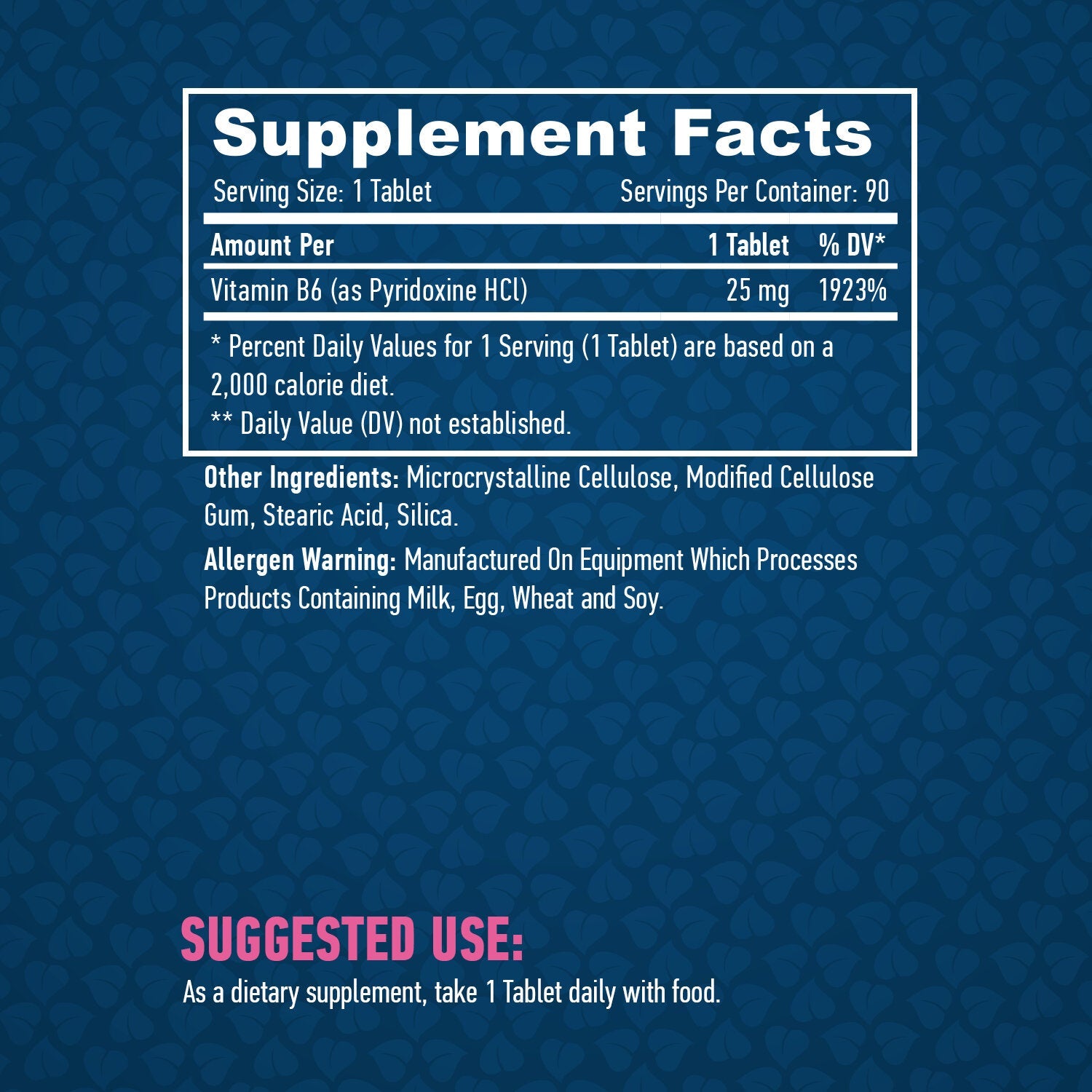 Pozor: Pred začatím užívania vitamínu B6 sa poraďte s lekárom, najmä ak máte zdravotný problém alebo užívate lieky. Výrobok je určený pre dospelých.