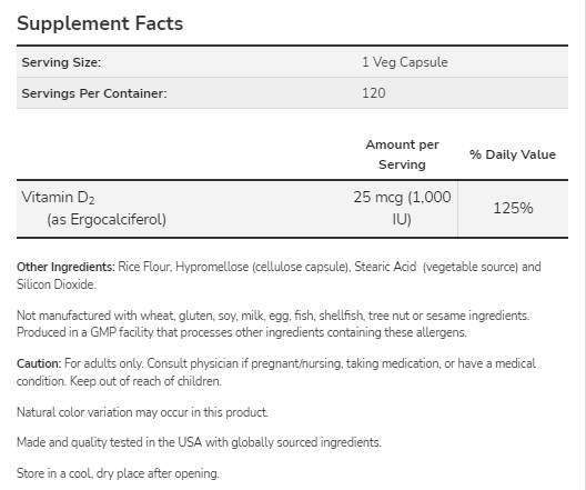 Vitamín D 1000 IU | Vegetariánska suchá 120 kapsúl