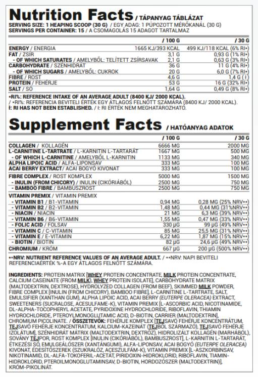 Náhrada jedla, kokteil s vysokým obsahom bielkovín a vlákniny v kombinácii s pridanými zložkami podporujúcimi diétu.