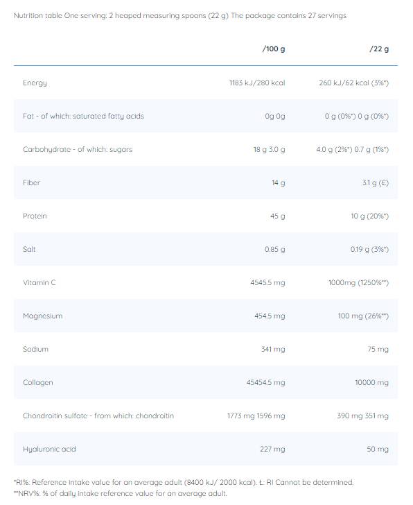 Kolagén+ prášok je pomerne komplexný produkt s vysokým obsahom účinných látok. Množstvo účinných látok obsiahnutých v produkte je určené tak, aby jeho príjem poskytoval komplexný a komplexný arzenál na udržanie zdravia vlasov, pokožky a nechtov a na pomoc pri zachovaní alebo obnovení vitality pokožky a dokonca mal pozitívny účinok.