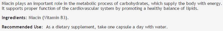 varovania: Odporúča sa neprekračovať uvedené dávkovanie. Nežiaduce reakcie sú možné u ľudí s alergiou na niacín alebo pri užívaní vysokých dávok. Ak máte špecifické zdravotné problémy alebo užívate lieky, poraďte sa s lekárom.