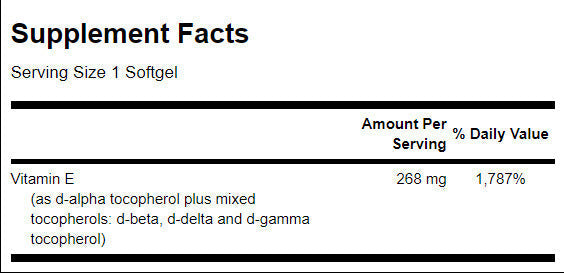 Hoci je vitamín E dôležitou živinou pre silné srdce a zdravý kardiovaskulárny systém, je oveľa viac ako len vitamín. Antioxidačné vlastnosti vitamínu E chránia životne dôležité tkanivá v tele proti ničeniu voľnými radikálmi. Naše ľahko vstrebateľné kapsuly sú 100% prírodným zdrojom vitamínu E.