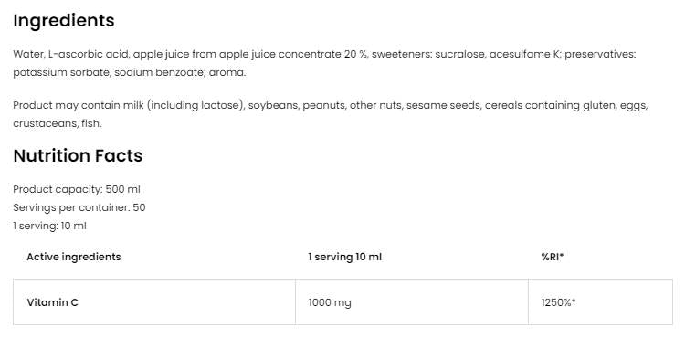 Vitamín C je nevyhnutný vitamín potrebný na udržanie zdravia a pohody. Jeho úloha pri posilňovaní imunitného systému nemá obdoby a je tiež silným antioxidantom, ktorý chráni bunky pred voľnými radikálmi. Užívanie vitamínu C 1000 Liquid môže pomôcť zlepšiť textúru pokožky, ktorá je nevyhnutná pre zdravo vyzerajúcu pokožku. Okrem toho hrá tento vitamín dôležitú úlohu pri vstrebávaní železa, čo je prospešné najmä pre ľudí s anémiou.