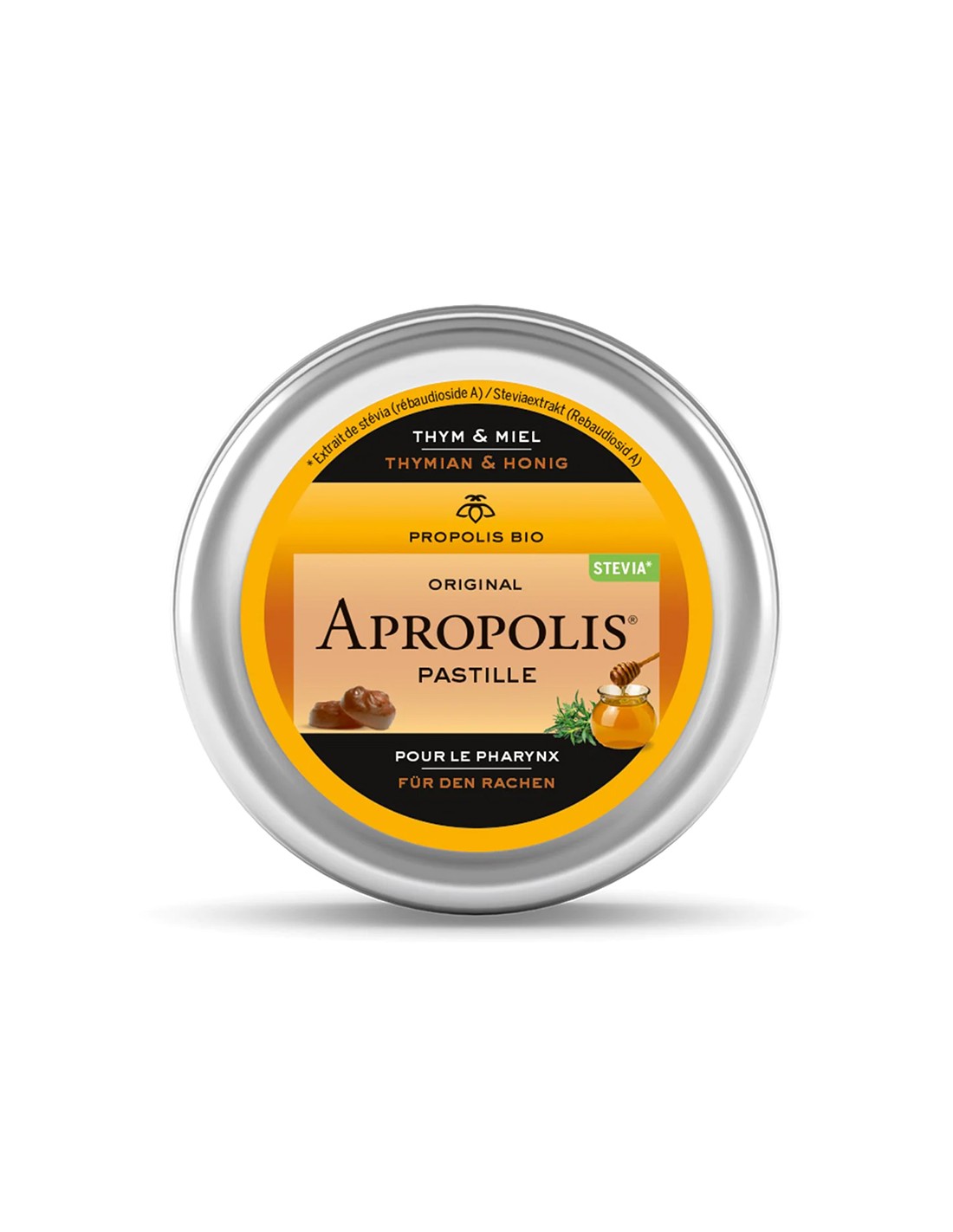 Original Apropolis® Pastille Thym and Miel / Med and Thyme Pastilles je produkt, ktorý podporuje normálny stav hrdla a dýchacieho systému. Tento unikátny produkt spája blahodarné vlastnosti propolisu, medu a tymiánu. Tieto pastilky sú vytvorené s ohľadom na vaše zdravie a kombinujú prírodné zložky, ktoré majú pozitívny vplyv na hrdlo a dýchací systém.