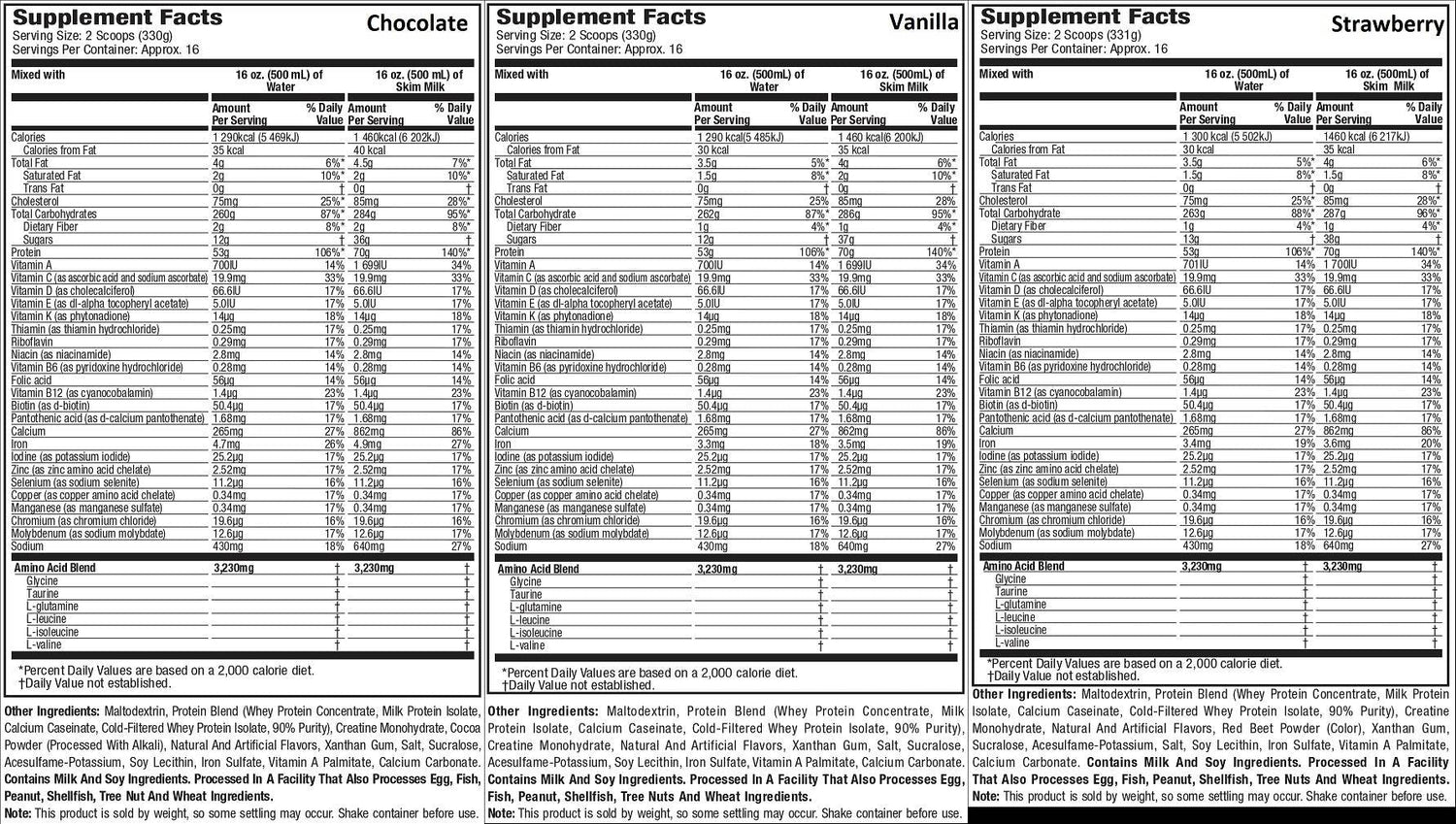 100% prémiový gainer na svalovú hmotu pomáha vám uspokojiť vaše kalorické potreby tým, že poskytuje pôsobivý 1270 kalórií, vrátane 50 gramov vysokokvalitných bielkovín a 261 gramov sacharidov pre energiu v každej porcii Obsahuje esenciálne minerály, celé spektrum aminokyselín a pokročilé zlúčeniny, o ktorých je vedecky dokázané, že pomáhajú budovať svalovú hmotu a silu.