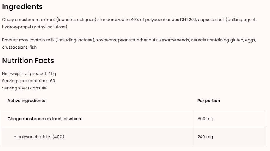 Čaga, tiež známa ako „čierna huba“, je silný prírodný produkt bohatý na antioxidanty, vitamíny a minerály. Užívanie kapsúl Chaga 600 mg môže pomôcť posilniť imunitný systém a dodať energiu a vytrvalosť, ktoré sú obzvlášť dôležité pre aktívnych ľudí. Táto huba ponúka aj množstvo benefitov pre kardiovaskulárny systém a podporuje zdravie pokožky, vďaka svojim protizápalovým vlastnostiam.