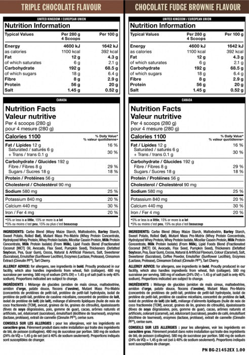 MUTANT Hmotnosť Dvojkomorový Pomer sacharidov a bielkovín 3:1 poskytuje optimálny pomer pre rýchle budovanie pevných svalov. Vaše telo získa palivo (sacharidy) potrebné na energiu a zároveň umožňuje dodávanie bielkovín do svalov bez ich poškodenia. A použitím zmesi 10 kvalitných bielkovín v Iso-Stack 10, ktoré sa uvoľňujú súčasne, dodávate synchrónne uvoľňovanú matricu; najprv sacharidy pre energiu a ihneď potom bielkoviny pre čistý rast svalov.