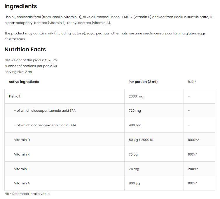 Omega 3 Liquid s pridanými vitamínmi A, D, E a K poskytuje komplexnú starostlivosť o vaše zdravie. Tento produkt je mimoriadne prospešný pre srdce, mozog a imunitný systém, poskytuje potrebné živiny pre optimálne fungovanie organizmu. Omega 3 mastné kyseliny prispievajú k normálnej funkcii buniek a znižujú zápalové procesy v tele, čo je nevyhnutné pre celkové zdravie.
